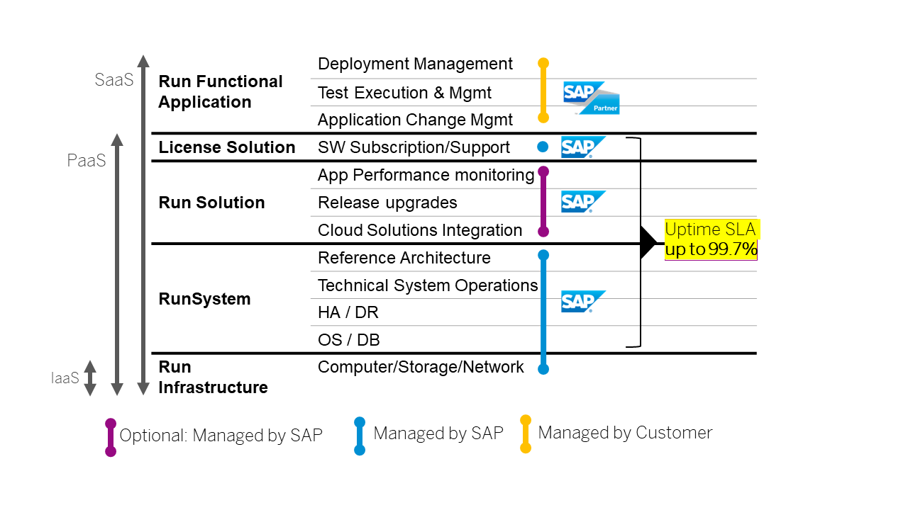 • Die Systemverfügbarkeit ist auf der Anwendungsebene garantiert. Die zuverlässige öffentliche Cloud-Infrastruktur und die SAP-Referenzarchitektur reduzieren das Ausfallrisiko erheblich.